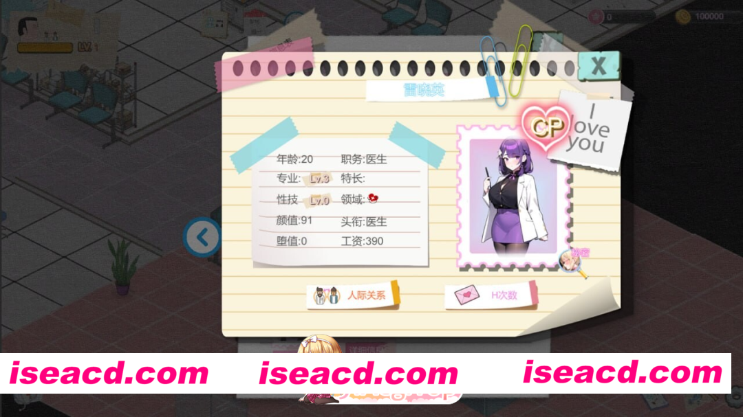[2025.3.1 发售] ·游戏介绍· 这是一款18禁的医院模拟经营游戏。 您将扮演医院的院长,管理一个医院。 1.玩法: 游戏通过[鼠标左键]来操作主角移动,通过[空格键]和场景内人物和物品交互。 2.内容: 游戏中每天都会有各种各样的病人来到医院,通过扩大设施来接纳更多新的病人,通过研究新技术来治疗疑难杂症。 在经营的同时还可以和护士以及医生进行各种各样的互动。 每个女孩都有弱点,找到弱点就可以攻略她们。 是将医院打造成一家普通的正统医院,还是把医院变成专为会员提供特殊服务的场所。一切都取决于你。 3.特色: 本作虽然是一款模拟经营类游戏,但是我们希望玩家不像传统的模拟经营游戏那样俯视角掌控全局。 而是让玩家以院长的身份,作为一个“人“,参与到医院的日常运营当中去。 这种差别很难描述,还是请您亲自到游戏中体验吧。 更新日志 V3.6.7 补全了特殊女病人的回忆录像,修复了副市长走到第一个房间就返回的bug 新增内容: 1.补全了特殊女病人的回忆录像(治愈后获得) bug修复: 1.修复了副市长走到第一个房间就返回的bug(是因为多个房间重新排列后引起的)