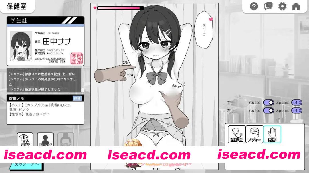 沉浸式健康检查模拟这是一款以「健康检查」为名目,可对清纯认真的巨乳女孩进行全身触诊的羞耻系触摸游戏。