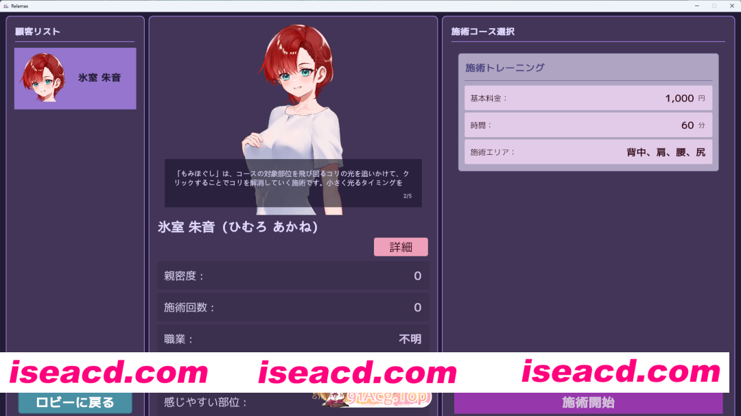 你作为按摩店“Relax”的店长,任务是让顾客满意、逐步提升口碑评价等级。随着等级提高,你将解锁各种按摩技法、沟通技巧以及道具。